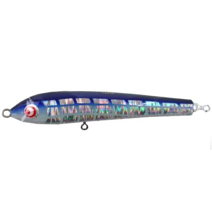 参考価格: 6,270 円T.S.Factoryでは第2弾としてOBOROと同時進行でテストしていたOBOROのダイエットモデル『D MODEL』を発売致します。特徴としては先行発売しているOBOROに比べてルアー頭部付近のボリュームを約14%カット。左右の側面をフラット化する事で、より素直でナチュラル感のある動きが演出できプレッシャーの高い場所などでは特に有効です。また、従来のOBOROのウェイト比率を維持し、更なる飛距離アップにも貢献。今回は大型のベイトを好んで捕食している時等に威力を発揮する220mm/110gサイズを追加。更にフラッシングによるアピールを増大する為にホログラム面積を大幅に増やし、腹部側からもアピールするようにデザインしました。 -