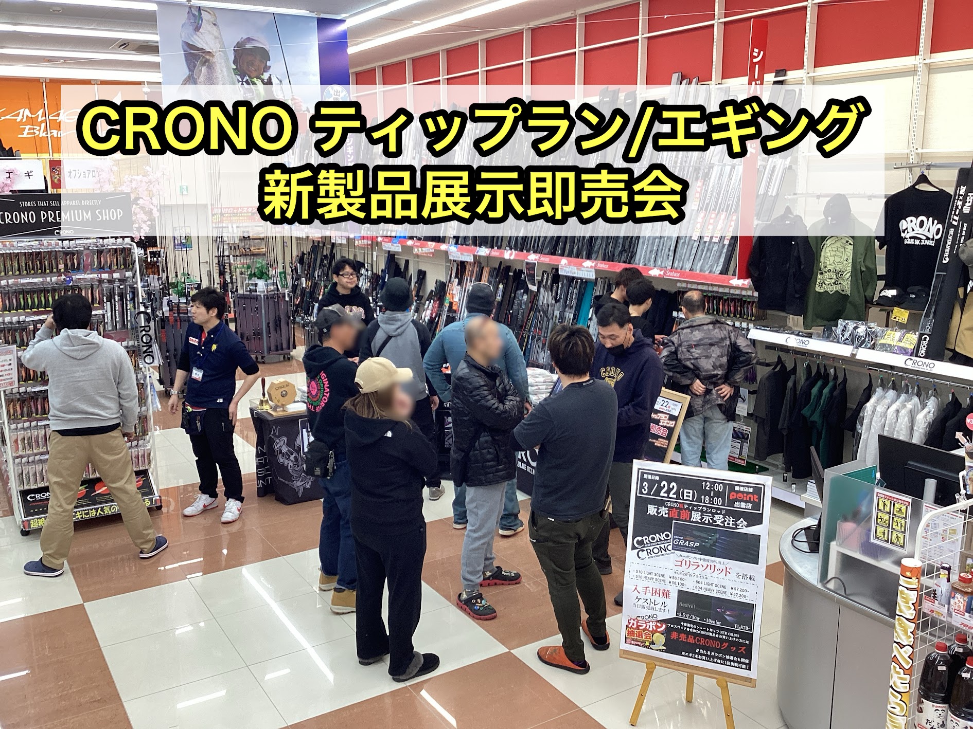 みなさま、こんにちは CRONO ティップラン/エギング 新製品展示即売会 はじまりました!! 開始より大盛況いただいております 日時...